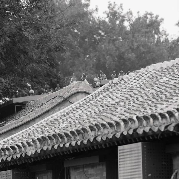 等待汽车通过的间隙,耳边传来一阵阵熟悉的声音,抬头看,原来是屋顶上群鸽飞舞的声音,真的是久违了!只可以没有三脚架,无法扑捉到这一幕最地道的老北京景象。