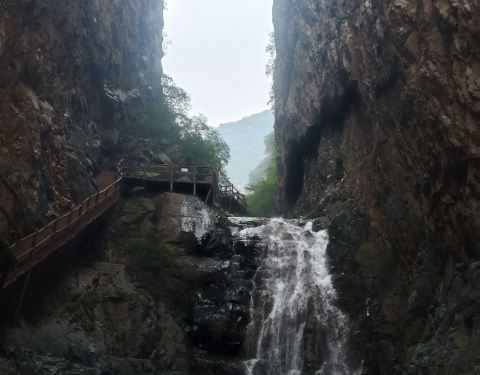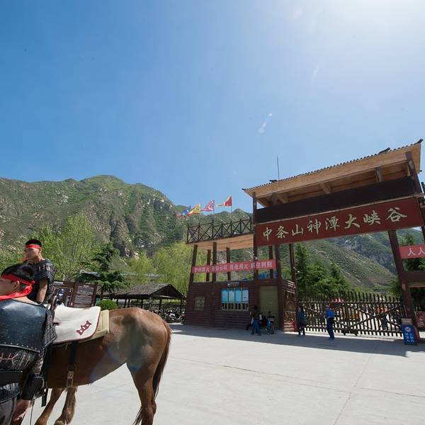 神潭大峡谷是在距今5.7亿年前的寒武纪时期,由地壳运动而形成的一个大裂谷,原名水谷,距今已有千年历史。奇峰、怪石、翠海、叠瀑等组合成神奇幽美的自然风光,走进景区,仿佛置身于一幅美丽的山水画卷,令人流连忘返。 景区内有高空玻璃栈道、镂空玻璃桥和高空钢索桥等惊险的挑战项目,让你尽情体验脚底悬空、云端漫步的高空刺激。到了山顶,如果体力不支,可以坐滑道轻松到达山腰,再坐车就可以到上山入口处。出口处是水峪口古村,这里有凉粉、煎饼、扯面、油糕等各种传统特色小吃,你在品尝美食的同时,还可以零距离欣赏纯手工的制作工艺。