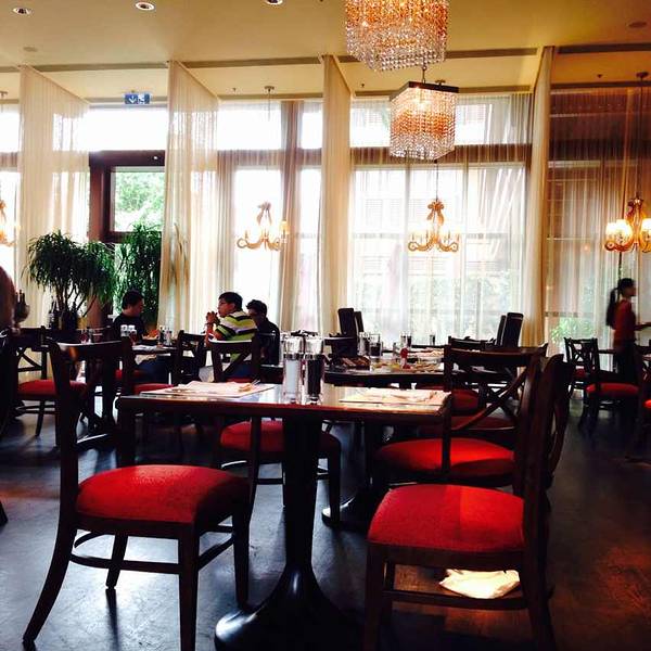 喜来登的招牌意大利餐厅,环境优雅有爵士的味道,餐厅的奶酪非常出名还有专门的展柜。意粉是餐厅的特色菜,种类各式各样。厨师在席前现做,香气逼人。海鲜、豚肉饭都很惊艳。价格也不算贵。特别喜欢这里的半自助餐,甜品、沙拉选择很多。