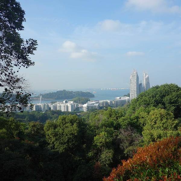 花葩山位于市街西部,虽然高度只有117公尺,却坐拥360度开阔视野,将城市海港及邻近岛屿全数收纳眼底,可远观新加坡的港都容颜、圣淘沙以及邻近的印尼岛屿。绿茵中伫立着一只白色小鱼尾狮塑像,是游客们拍摄到此一游的最佳场景。
