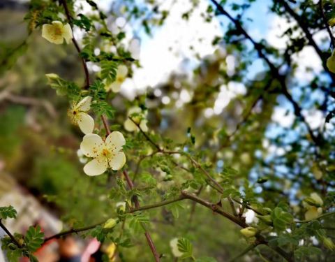 这个景区门口离市区不远,我们到达林芝入住酒店吃完午饭休息一下后已经下午三点半了,只有找林芝周边的景点了,搜到措目及日后,直接在酒店楼下扫码租了个麟智用车,就往景区走。开车很近,十几分钟就到了,但是景区里面坐车就远了,翻山越岭的到了湖边一看,就只有一个观景台,公路拦着,人行栈道也拦着,就只有一个角度看湖了。待了十几分钟就往回走了,不过出来马路上不知名的小白花开了,配合藏式围墙,还是多漂亮的