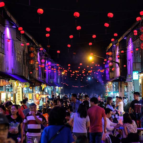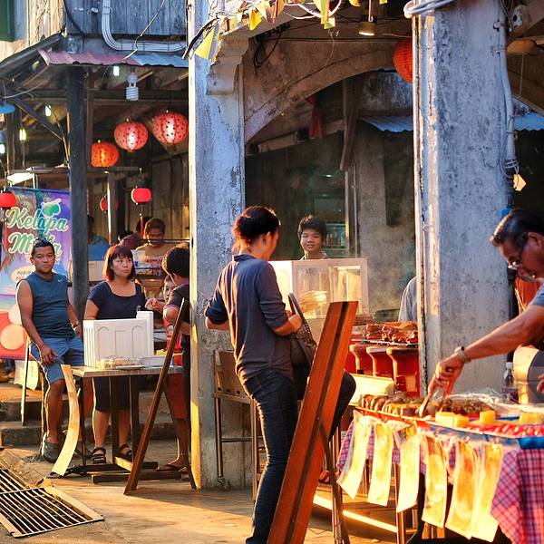 拥有百年历史的新尧湾老街,近年搞起夜市活动,高挂的红灯笼,搭配本来就是百年前的木板建筑老店,充满老南洋风情。在这里你可以品尝不同风味的美食,包括竹筒鸡、各种烧烤肉串、三层肉、手工包、手工糕点、手工面,客家菜粄、日式烧烤、马来传统沙爹(羊肉及牛肉串),甚至还可以找到冷门的鳄鱼汉堡包。