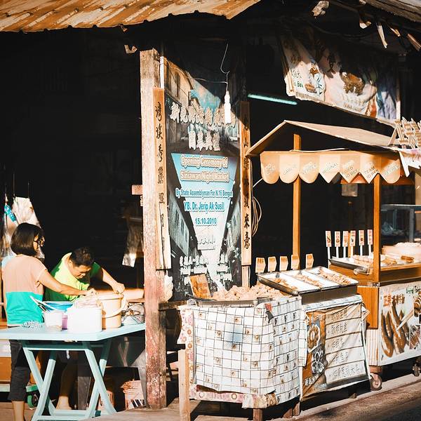 到古晋游玩一定要来新尧湾老街夜市,古色古香的老街还能找到各式各样的小吃。