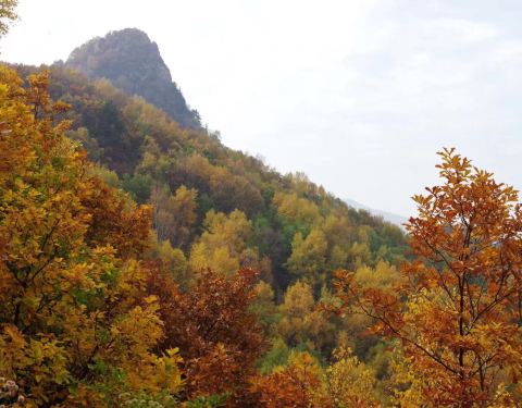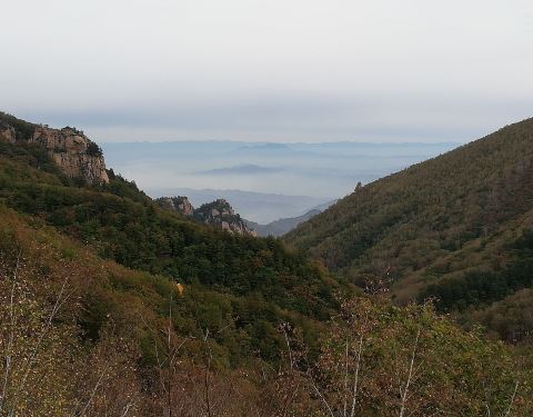 没错,完美的秋色怎能少了白桦林的身影!白草洼景区80%以上是天然次生林,其中有近三分之一为白桦林,是距北京最近、林相齐整,华北地区罕见、保存最为完好的一片白桦林。在白草洼除了看树还可以观山,此山峰被大家誉为“小黄山”。因为这里有一座丹霞地貌形成的山峰奇景,由于大自然的精心雕琢,形成了酷似黄山的奇观。公园初建时,国家旅游局一位旅游规划专家在看到此景时,不住赞叹此山的奇骏,当即脱口而出“这简直就是一座精心复制的黄山啊。”后来,这里被命名为“小黄山”,并在观赏过这一景色的游人中口口相传。站在此处,远望“小黄山”,既可以领略黄山一样的奇松、怪石,又可看到如海的白桦林,远近景色交相辉映,形成了一派独特的塞外美景。白草洼国家森林公园实在是太大了,上山还是自驾开车方便,但只能周一到周五非节假日时才可以自驾上山,主要是因为山路太窄了,双方向会车相当困难,如果周末或者节假日游客太多自驾车太多就会太危险了,所以节假日上山只能搭乘公园内部的游览车,也还是很方便的。山顶大雾弥漫犹如仙境在白草洼主峰海拔1672米处,有一片石海。向白草洼主峰方向游览时,会看到这一奇特景观。大量布满青苔的岩石裸露在山地中,自然形成,景色十分壮观。如果想来的朋友还需要注意一点,公园位于山林中,气温要比北京市中底12度以上,因此现在已经非常冷了,来的朋友一定要准备防风保暖外套,不要像我们穿个薄外套就上山了,基本上是被吹下来的,虽然美景如画,但依然不能抵御寒风刺骨。白桦林区内不仅空气清新,负氧离子含量极高,被誉为“空气维生素”的负氧离子有利于人体的身心健康。在入秋之际树叶渐黄渐红,秋风吹落叶,真是拍照好地方啊!公园内部有家响水山庄,可以住宿也可以用餐,店家很有心的准备了姜丝可乐。(看来大部分过来的北京游客都会忽视温差忘记携带保暖外套啊)粗茶淡饭看似简单,但无论是烤水库鱼、巨大馒头、续了4-5次的豆腐白菜汤和姜丝可乐都是超美味呢!酒足饭饱两天的游玩如此快的结束了,大家整装待发准备回京。自古逢秋悲寂寥,我言秋日胜春朝。