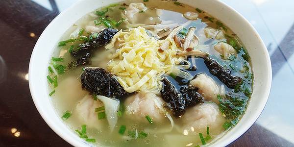 首先虾仁小馄饨里的香干和蛋皮比上海的地道 虾皮 榨菜沫放的更加大方 个人觉得他们的小馄饨更好吃 其次