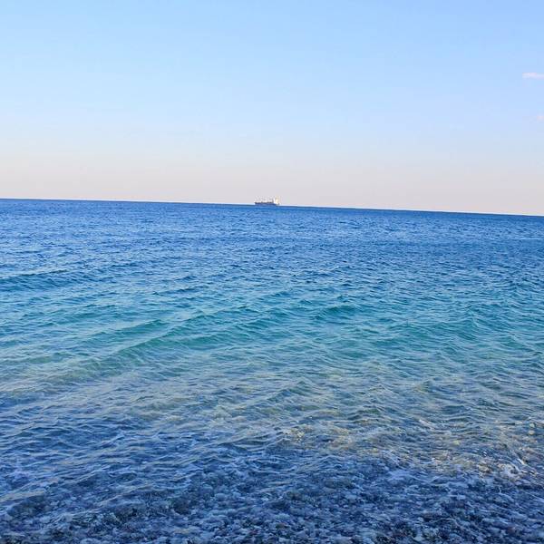 从安塔利亚古港口看到的地中海,关于地中海的湛蓝色可能是因为海水极为清澈,悬浮物质较少,可见光中蓝光紫光的强烈反射 。