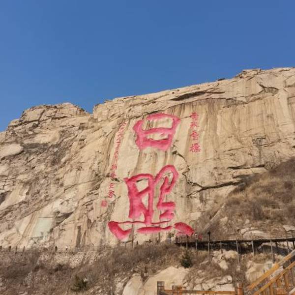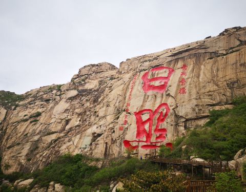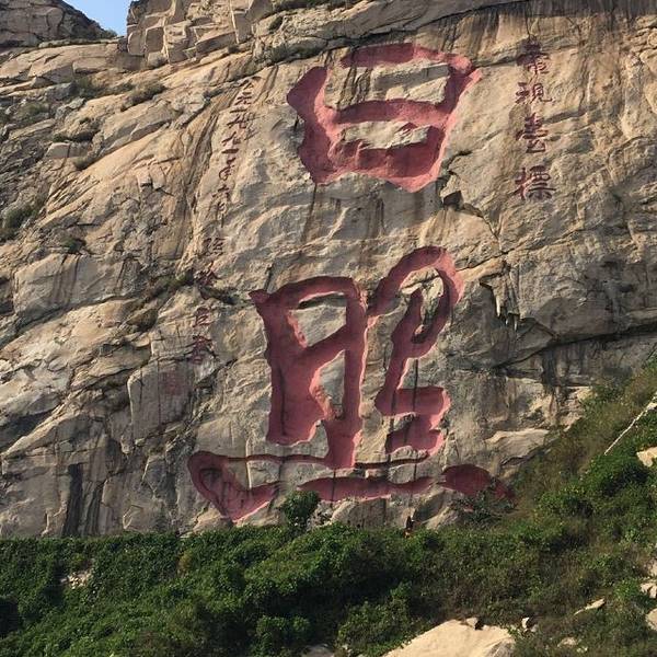 大有拔地凌霄之势,巍巍耸立,怪不得有“峭壁端严,屹然一邑屏障”的说法。河山风景区的标志就是这幅代表日照现代形象的巨书“日照”。