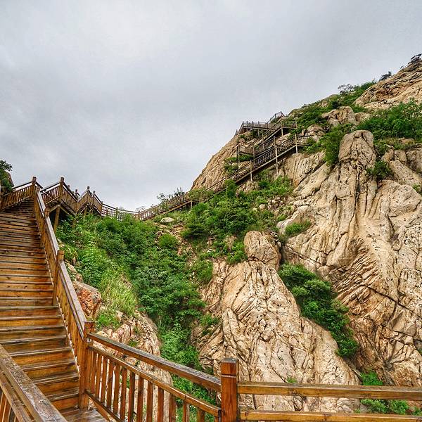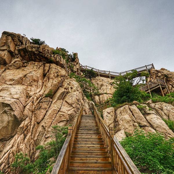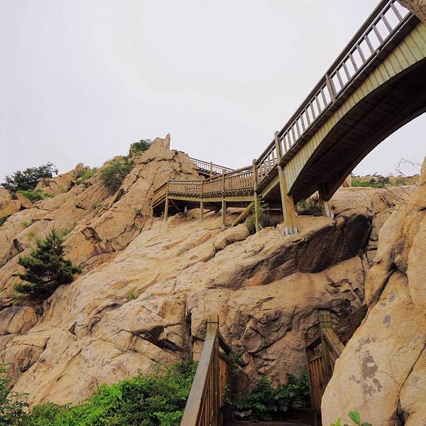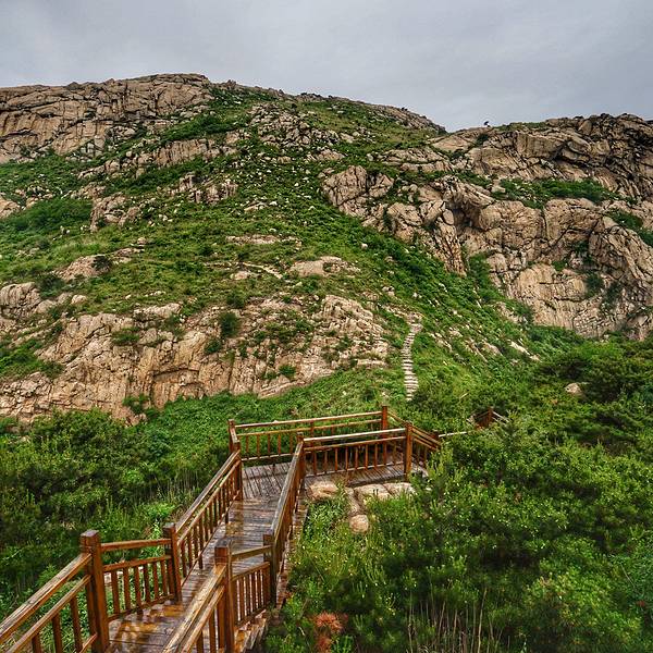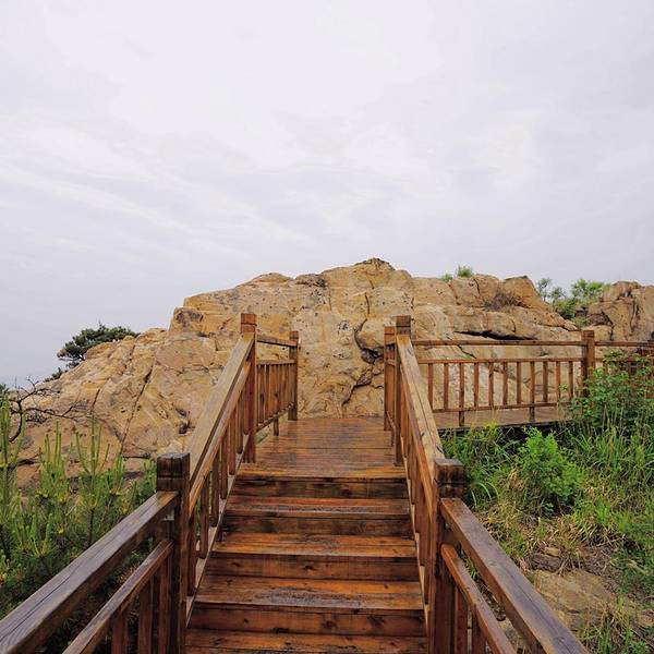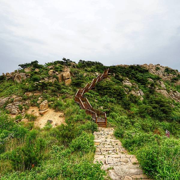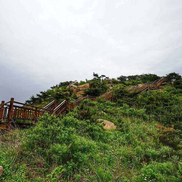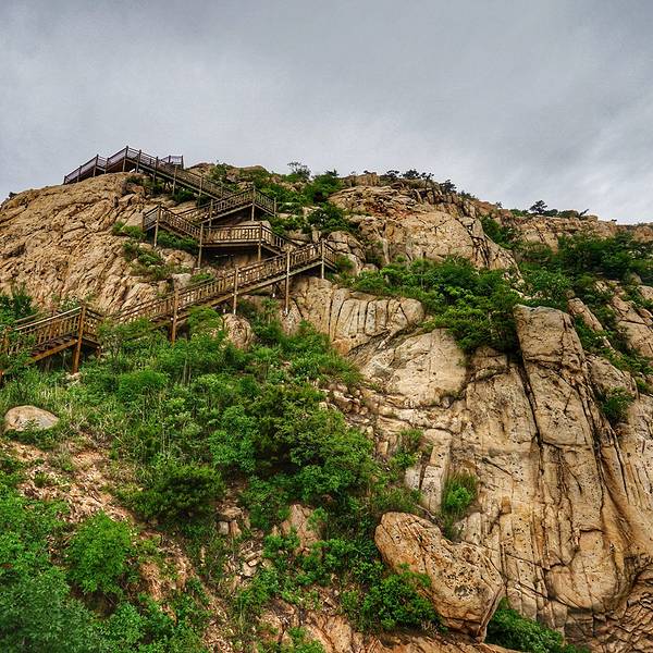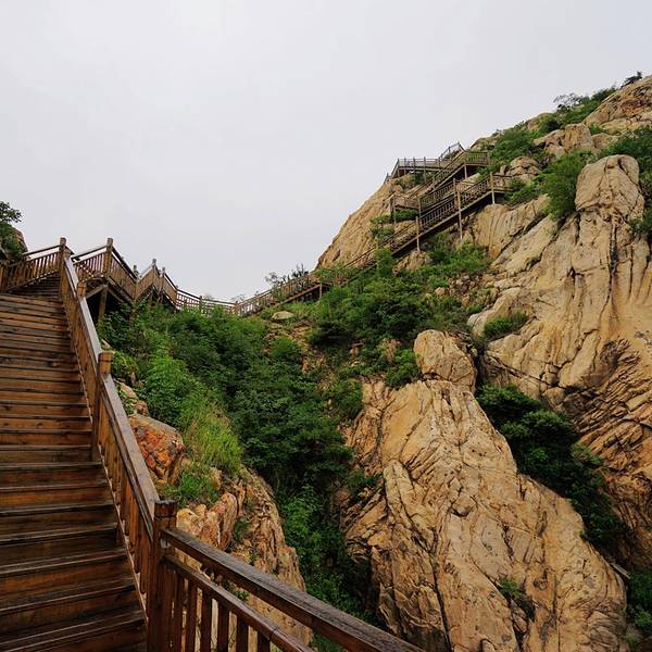 离吴家台村只有15公里的日照河山也绝对是值得一...下午还是阴天,但是雾散了,于是决定去河山风景区看看。