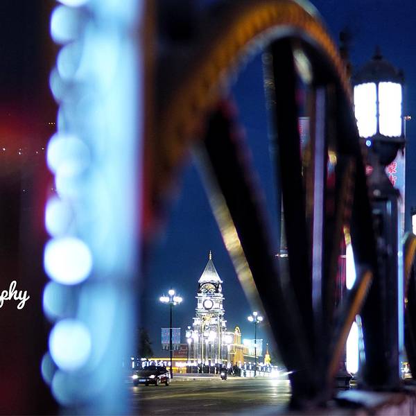 金秋九月,北疆行——海拉尔中央桥(二十一), “中央桥”,海拉尔的景观之一,修建于1942—1944年,为钢筋混凝土桥,桥的两端竖有欧式,钟楼,海拉尔三面环山一水中流,伊敏河水从桥下流过,夜晚的“中央桥”更是美轮美奂……,