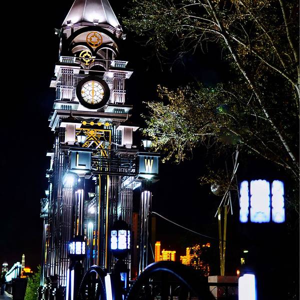 桥头的钟楼式装饰建筑别具一格,大桥夜景非常漂亮。