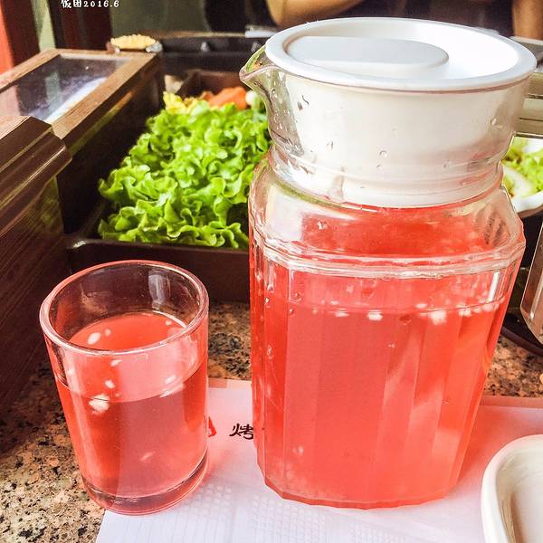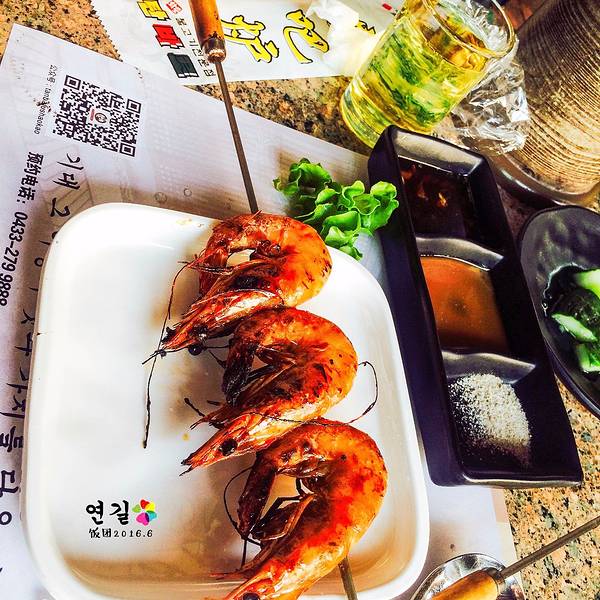 有点甜味的烤虾,真的好难剥,味道倒是蛮好吃的。反正很好喝,真的不是酒吗?烤肉配冷面!这是什么