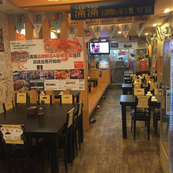 在济州岛,走进一家餐馆,遇到一个可以给你指路的美女店员和一个可爱的韩国老板,再加上一桌子的海鲜大餐,是这次旅行最最幸运的事了 【关于嗅觉】:济州岛的风都卷着着海水的味道,如果来到这里不吃一顿帝王蟹,那你一定枉需此行。如果你吃帝王蟹没有来到“满满帝王蟹”那也将会是你此行的遗憾。我们闻着海鲜的味道,寻着网上的阵阵好评,找到了这家叫【满满】的餐厅。 【关于视觉】:在这条叫“保健路”的路口有三家紧挨着的帝王蟹料理。满满是中间的那家。三家店的门面都不大。唯有满满家的门框写了“唯一入口”,请认准唯一入口哦。进店里以后,最引人注目的是贴了满墙的照片。每一张笑脸下都是一个旅者的故事。你会忍不住去看,去找那些面孔里,眼神里满满的幸福,满满的赞许,和满满的满意。 【关于味觉】:还没开始吃,就上来了一大桌子的海鲜料理。多宝鱼刺身,鲍鱼,章鱼,海鲜大酱汤等等。对于走了一天的我们来说,这些丰盛的前菜足以暖胃。前菜吃的差不多的时候,帝王蟹来了。美女店员端着一巨大的盘子走来。装了一大盘子帝王蟹!!!一个字:鲜!两个字:超鲜!!都是活的帝王蟹现做的。肉的含量90%以上。味道你们靠想象!反正一桌子吃的什么都不剩!!吃完后还有蟹膏炒饭!!炒饭配海苔,美味思密达!!最后还有老板带回来的石头老爷爷蛋糕,香香的 【关于建议和意见】:其实真心挺好的,而且贴心店员还送了我们济州岛旅游指南。建议嘛,建议店家提醒下顾客吃螃蟹要注意的事情,还有把高大上的明星签名弄个墙贴一下,写上是谁的签名。然后嘛,多办点团购或者优惠也是赞赞哒……还有石头老爷爷能当作餐后甜点嘛?