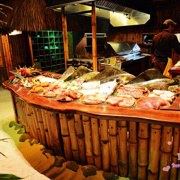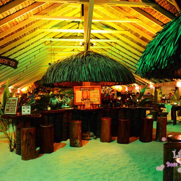 这个在波拉波拉主岛上著名的血腥玛丽餐厅,世界很多明星都来过。留下了名字我找到了韩庚的名字哦。主要吃海鲜BBQ为主!挑选新鲜的海鲜,现场烤。这个点菜比较容易你就指就可以了!味道非常不错!还有红红的血腥玛丽哦 注意事项: 提前预定 坐船前往主岛等司机接送,回程一定要看好送你回去要不就没有船回酒店了