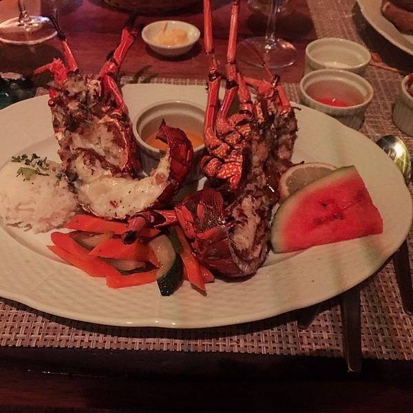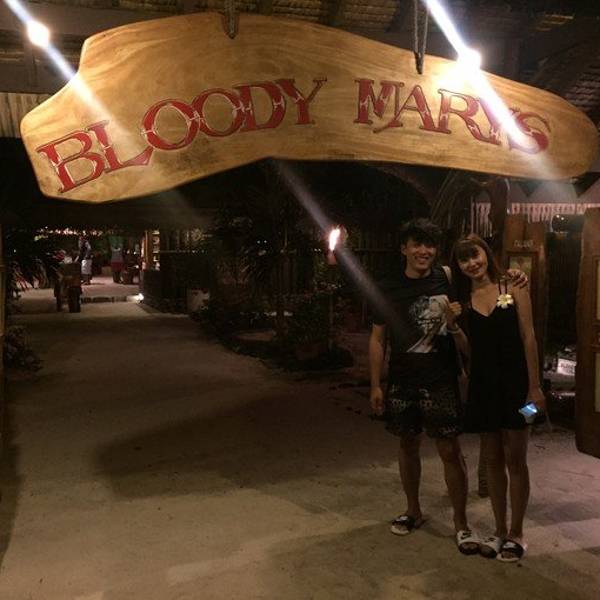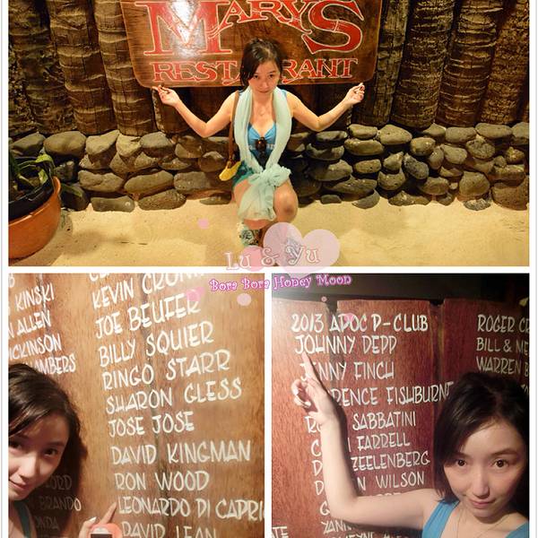 这个在波拉波拉主岛上著名的血腥玛丽餐厅,世界很多明星都来过。留下了名字我找到了韩庚的名字哦。主要吃海鲜BBQ为主!挑选新鲜的海鲜,现场烤。这个点菜比较容易你就指就可以了!味道非常不错!还有红红的血腥玛...