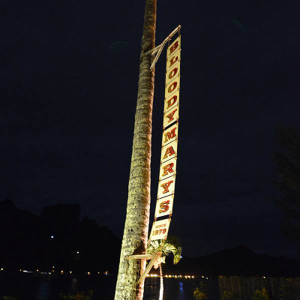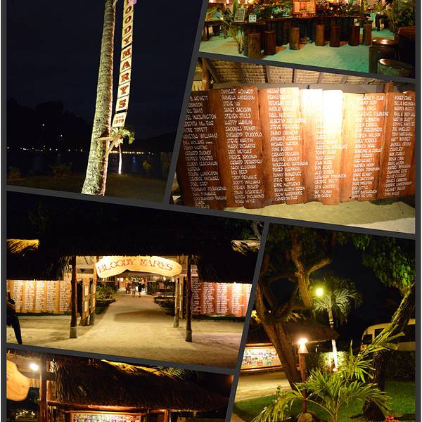 转眼一下午过去了,我们自娱自乐了之后,跑到前台,终于迎来了一个好消息,第一天预定的今晚的用餐行程可以如约而至。OH,YEAH,通知少爷,芸芸,回府更衣,准备向主岛出发。 BLOODY MARYS,一个全球都有名的,南太平洋罪出名的餐厅,是这次的必去之地。早就听说菜式SOSO,我去嘛,为一个人儿,WHO?一会儿便知晓。之前少爷在微信里问我,这个餐厅干嘛叫这么个名儿,我给他南辕北辙地讲了一遍血腥玛丽的鬼故事,哈哈,为什么叫这个我也不知道啊。有的人说就是伏特加和番茄调的鸡尾酒的名字,不晓得餐厅的名字出于什么典故,75年建成,当时只有5张桌子,扬名海外是因为慕名而至的人越来越多,不乏大牌明星.......