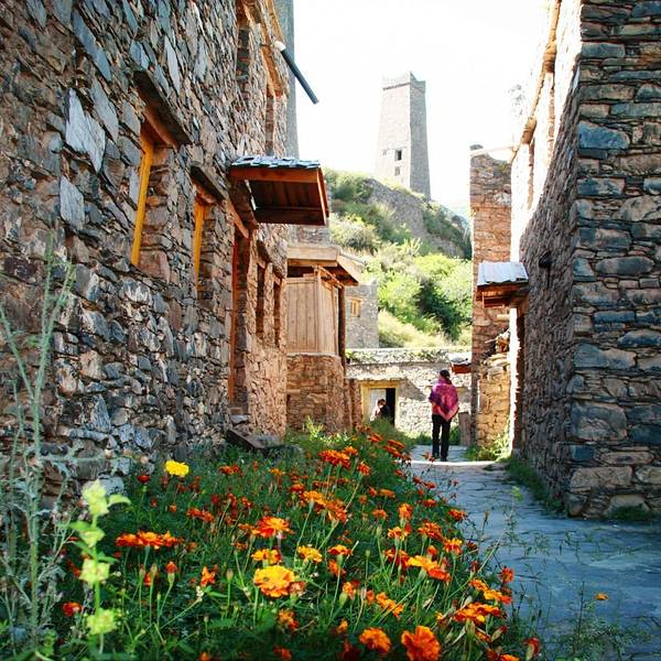 ...还真是小惊艳了下,纯净蓝天之下,山顶上石头的街市,高高的碉楼,错落的房子,山下看着就是一幅画啊