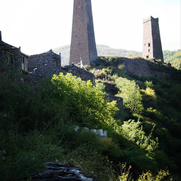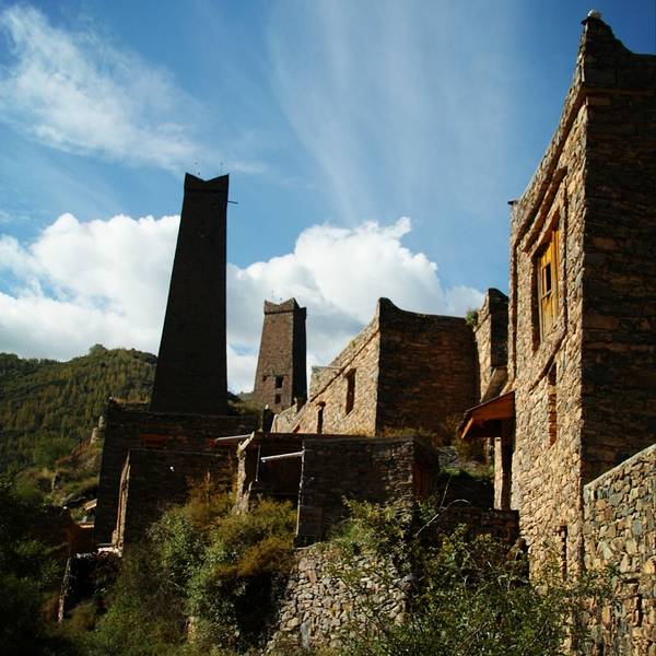 松岗直波八角古碉群景区位于马尔康县城17公里的松岗乡直波村。