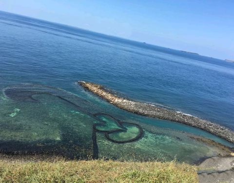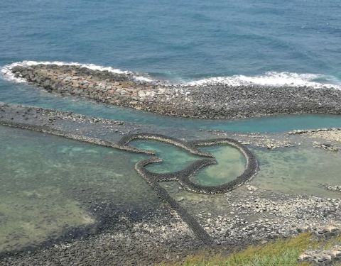 双心石沪是一个非常美丽的地方,搭配着蓝蓝绿绿的海洋背景,和情人一同探访会感到倍加幸福,石沪原本是人工珊瑚礁岩设计用来捕鱼,无心插柳成为大家拍照参观的景点。