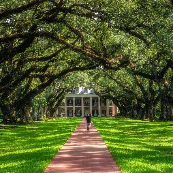 橡树庄园坐落于路易斯安那州的河流地区。它是新奥尔良声名远扬的历史种植园,始建于 1837 至 1839 年间,一开始是甘蔗种植园,由奴隶劳工经营,见证了美国南方奴隶制的兴衰,于 20 世纪后期成为历史地标 。 庄园得名于前庭那 28 棵整齐排列的橡树,它们组成一条壮丽的林荫大道,直直通向主屋,也是 Instagram 博主们热衷的打卡点 。这些橡树树龄超 300 岁,高大粗壮,枝叶繁茂,遮天蔽日,走在其间,仿佛能听见历史的回响 。 庄园主屋极具特色,是典型的希腊复兴风格建筑,洁白的立柱、宽敞的游廊,尽显古典优雅。屋内陈列着精美的古董家具、华丽的装饰,让人得以一窥美国内战前南方上流社会的生活 。