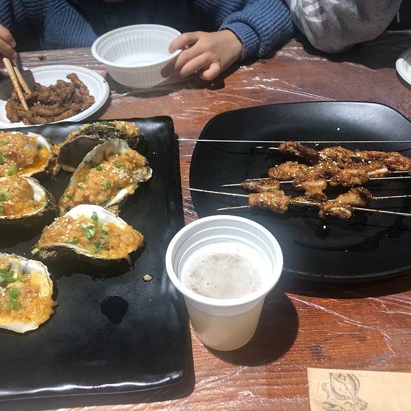 蟹脚面:感觉不辜负他的名气~有很多蟹脚。。。硬硬的不容易吃。。。牙咬的好辛苦啊。。。还有肉酱,拌着面味道很赞~ 茄子:烧烤必点啊,永远不会踩雷 土豆片:入味了也是非常不错~ 干子:就是豆腐。。看了推荐...蟹脚面:感觉不辜负他的名气~有很多蟹脚。。。硬硬的不容易吃。。。牙咬的好辛苦啊。。。还有肉酱,拌着面味道很赞~ 茄子:烧烤必点啊,永远不会踩雷 土豆片:入味了也是非常不错~ 干子:就是豆腐。。看了推荐点的。。。点多了最后吃不下。。其实喜欢吃豆腐之类的会喜欢 五花肉:两片五花肉夹着青椒!!好吃!