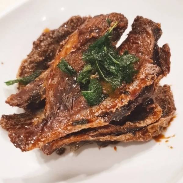 - 脆皮小黄鱼 小黄鱼焦香酥烂,连骨刺都可以一起嚼了吃,微甜的口味也很喜欢,我可以当零食吃