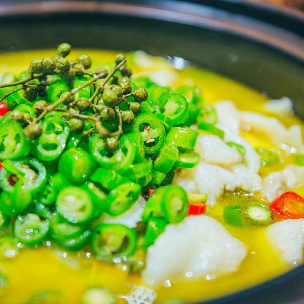 - 特色川菜这次先试了一下特色花椒鱼,是用巴沙鱼做的,肉质细嫩而且青椒花椒泡萝卜的味道各不相让,小...