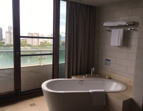 位置极佳,开窗是海,感谢值班经理给我们调了个有海景的房间,本来是一个阴暗的房间,都想退房了。早餐也可以,有海南特色,卫生干净。中餐厅的食物也还可以,不方便外出的时候也可以吃一下。