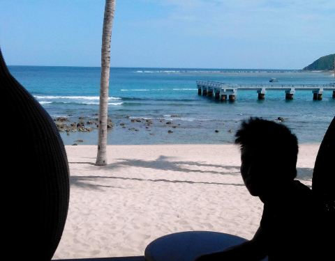 自从看到这个沙滩吧的许多照片后,就想来亲自坐一下~所以某个下午,妈妈和宝宝在酒店休息,我拖着老公去我垂涎很久的半山半岛洲际的沙滩吧。半山半岛洲际在小东海,从我们住的半山锦江旁的小路继续向深处开。大东...