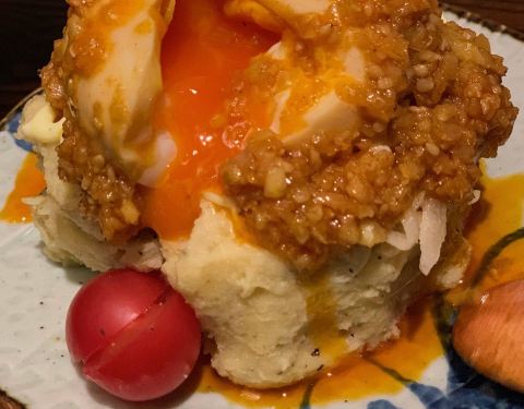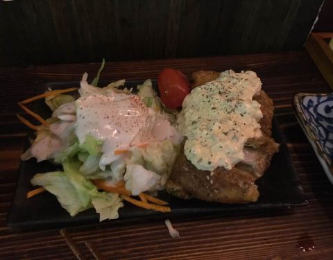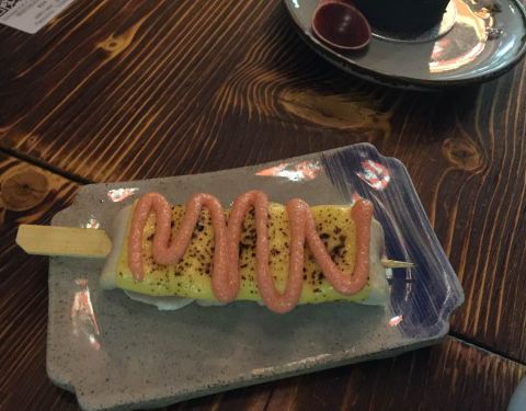 地点:来福士江安路店 超喜欢日式居酒屋,灯光暗暗的,还有热情的店员! 菜色真是超多的,选了大半天,上菜也是很快的。 「狗猫君烤饭团」选了做法是焦脆的,也很快就上菜了,外层是很脆的锅巴,配着肉吃比较好,因为淡淡的,没什么味道。 「熔岩土豆泥」值得一点,真的蛮好吃的! 「黑子」这款蛋糕是抹茶味的,冰凉可口,一点也不腻味。其他的都很棒,最好都选考的焦脆一点的!可惜得开车,不然配一杯小酒,那简直完美!