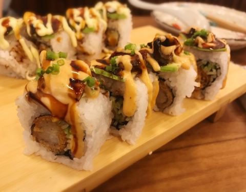 济南口碑很好的日料店,店面不大但很有格调,环境安静雅致。菜品颜值与美味并存,摆盘精致。其中,浪漫樱花颜值极高,摆盘是粉色的樱花造型,非常诱人,微甜的口感很棒。狮子的尾巴,里面裹有牛油果和虾仁,味道也非常独特。炙烤鹅肝、刺身船等菜品味道也都很棒。