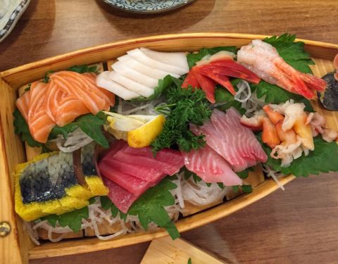 济南最早的一批日料店之一,以高性价比著称,吸引了不少年轻人。如果想人均100块吃日料到撑,这里是个不错的选择。就餐空间只有一间屋,没有单间,可以拼桌子,适合不同人数就餐。双人刺身船品类丰富且量足,品类多价格低,厚切三文鱼也不错