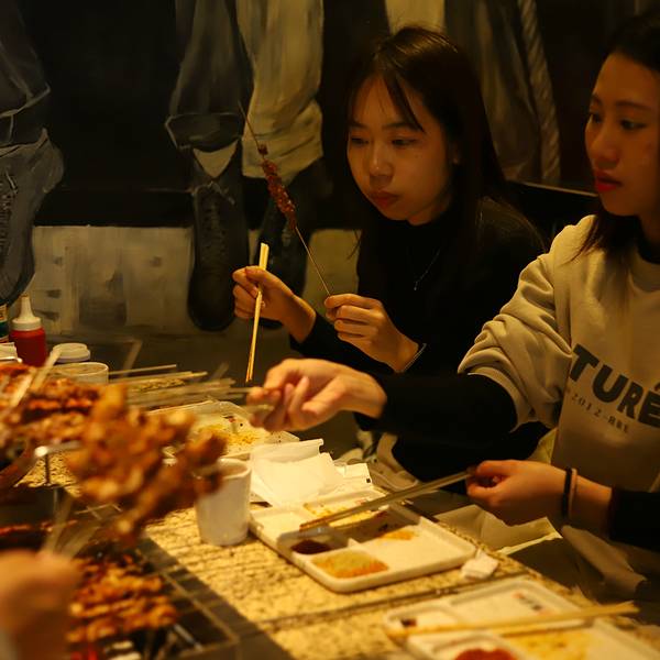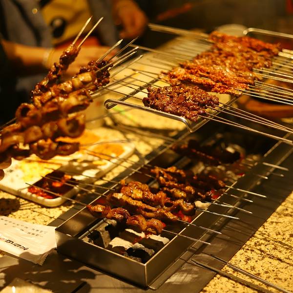 这是我们第二顿正餐,丰富满足。别人说,没有吃过东北的烧烤都不算来过东北。于是Peter带我们去吃当地小有名气的烧烤店“阿郎烧烤”;点了这么多,看傻了!猪肥肉