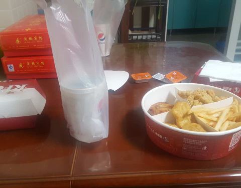 味道挺不错的,就是全家桶变成了三人餐,要九十多块了。