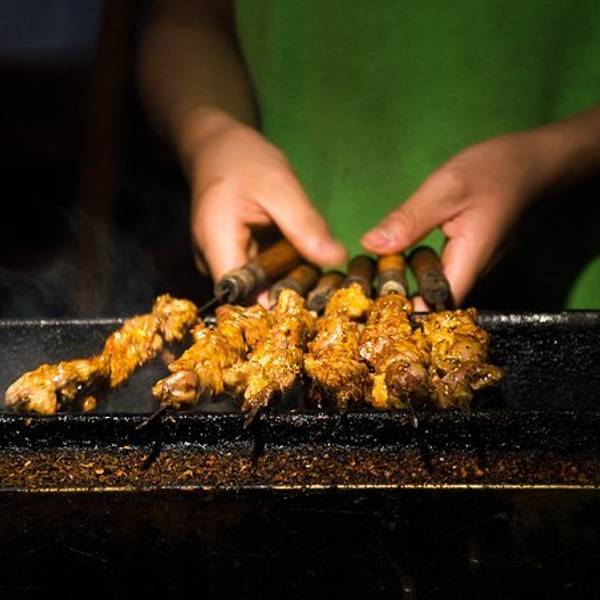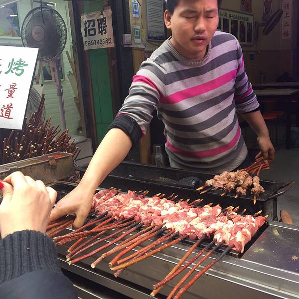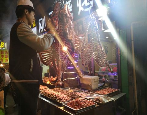 在附近闲逛,被几只高挂的羊骨架吸引。因为吃过东西了,所以只买了一串尝尝味道。等的过程中发现那骨架只是噱头,不过肉新鲜,味道好,无所谓了。准备空腹再去吃一次。