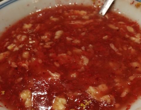 这是一家宁波的老牌饭店,门面破旧,但菜价不菲,宾客如云,需要提前订餐,盐水白虾,汤太咸,但虾肉弹嫩,老豆腐够入味,蟹糊味道很独特,有一股酒香,鸭舌值得一品,但和大嘉兴南湖传菜的还是差一点,这个鱼羹...