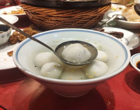 这是一家宁波的老牌饭店,门面破旧,但菜价不菲,宾客如云,需要提前订餐,盐水白虾,汤太咸,但虾肉弹嫩,老豆腐够入味,蟹糊味道很独特,有一股酒香,鸭舌值得一品,但和大嘉兴南湖传菜的还是差一点,这个鱼羹很特别,但对我这个不吃甜食的人来说不太受用,店家最后还送来点心,让人多了一些好感,总得来说还是不错的,就是贵了点!