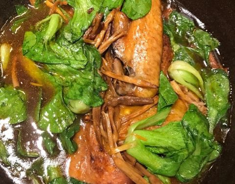 吃菜就是要人多一点才好呀,两个人吃炒菜只能看着很多选择干着急,肚子缺一点都不争气。几个招牌菜都要了,烤鲳鱼,酒酿核桃,糖醋排骨,韭菜炒豆。鲳鱼很鲜嫩,但确实也很贵,小小一要200块,肉痛。酒酿核桃口味刚好,里面还有小圆子,是我爱的感觉。