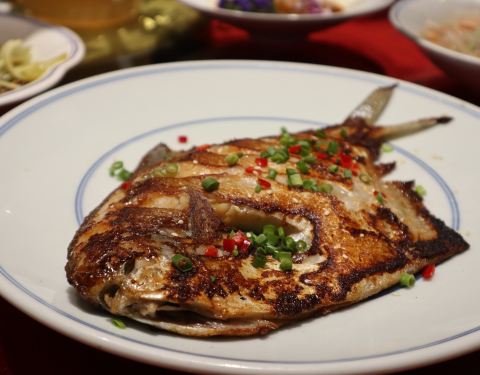 - 烤鸭也值得重点推荐,有点介于麻油鸭与酱鸭之间,甜口不腻,肉质不松散也不老,真是太好吃了 烤鲳鱼...