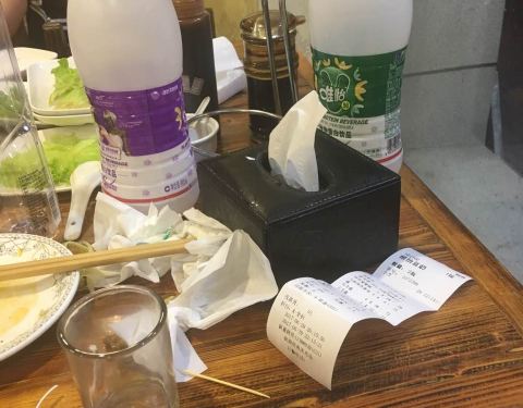 ...鸳鸯锅必点,下酒菜泡椒鱼皮和裙带菜还有川北凉粉都超赞,自己的吃法就是把香油碟和干碟搅拌在一起吃