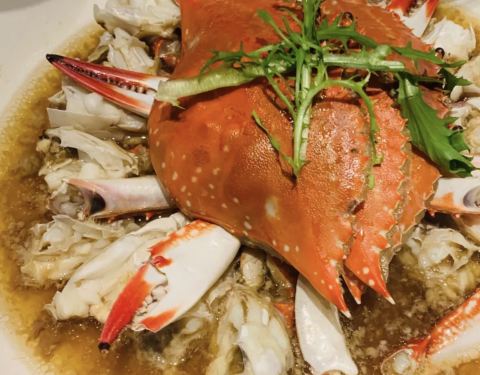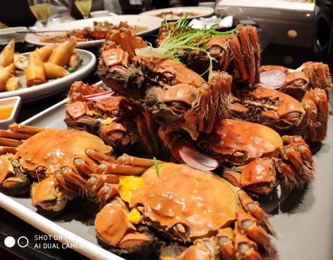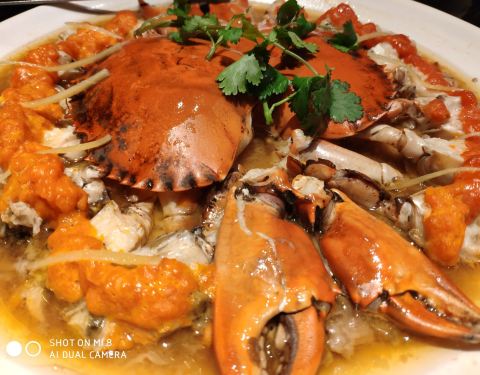 【花雕蒸三门大膏蟹】霸气十足有木有~这个季节青蟹最为肥美,真正的红膏相当紧实,白白的青蟹肉鲜...