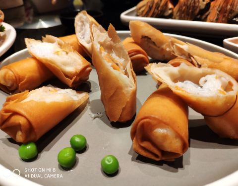 乔村二十八道(钱江世纪城店)位于钱江世纪城,地铁二号线盈丰路C出口出站步行即可到达。店面很现代,略有神秘感。推门进入,里面别有洞天,黑色墙面配个性灯光,石头盆栽,还以为到了画廊。 冷菜【目鱼香肠】白加黑超现代搭配,目鱼味的香肠,第一次吃,不错 【三文鱼厚切】摆盘精美,鱼腩厚切,绵软油润,赞 【樱桃红酒鹅肝】颜值在线,夹起一颗樱桃,含在嘴里慢慢融化,妙不可言~带妹子的,强推哦~ 【菌菇石榴包】形似越南春卷,顶上放了鱼籽,就像红石榴。包着的菌菇味道调得不错,可谓颜值内在俱佳 热菜【手撕烤羊排】量大,色焦黄,啃起来羊肉香嫩入味,一连啃了两根羊骨 【抱腌野生大白条】爆腌的手法令白条鱼肉鲜嫩滑溜,咸淡适中把控精准,赞 【招牌胡椒猪肚鸡】大砂锅内白白的鸡汤,先喝一碗汤补补。临安山里的走地鸡,肉质紧实不柴,猪肚味香浓,汤很是鲜美,个人感觉胡椒味略重,盖过了鸡的香味,有点可惜。 【花雕蒸三门大膏蟹】霸气十足有木有~这个季节青蟹最为肥美,真正的红膏相当紧实,白白的青蟹肉鲜甜带着浓浓的花雕酒香,强推 【腊肉蒸风鳗】摆盘讲究,喜欢腊肉香而柔韧的口感,风鳗鲜,肉质紧实度恰好 【椒盐皮皮虾】从一个对皮皮虾无感的人,到爱上皮皮虾,靠的就是吃到的一次比一次大且更美味。乔村的这道椒盐皮皮虾又刷新了我的认知,赞一个 【大闸蟹】震撼出场,最爱的公蟹,那一口肥膏,在嘴巴里弹开直到溢满,好满足啊 【水潺春卷】有一道创意菜品,外脆里绵软,层次丰富。 【雪里蕻冬笋炒蘑菇】【五彩缤纷时蔬】蔬菜做得也不错。 点心【黑松露野菌饺】菌中之王黑松露静卧在透明的芋饺中,经得起最挑剔的眼光。Q弹的芋饺,鲜美的黑松露,强推 【黑色流沙包】专门请香港茶餐厅大师指导创作,咬开一小口,奶黄流沙,很赞 【葛仙米炖梨】葛仙米第一回听到,吃起来口感像小粒木耳,炖梨的汤汁清甜,秋冬季服炖梨降燥最美不过了 【黑松露鲍鱼焖饭】吃了这么多美味,面对这一碗饭,只吃了一口就停不下来 饮料【鲜榨石斛汁】初次喝,清甜之中带着植物的清香,滋补养颜必备~ 就餐过程服务员热情又周到,骨碟换了三次。