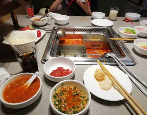 一进门就不停有服务员问好带路,非常有礼貌。坐的是包间,地形有点复杂,去卫生间回来差点找不到包间了。饭前有锅巴瓜子水果随便吃。菜品比较新鲜,味道还可以。锅底的味道还不错,但也有提升空间。服务好是他家的特色。价钱也不算贵。