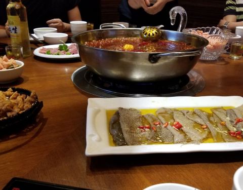 锅底很人性化,选择的种类很多,麻辣酸甜一次性全部满足。牛肉很新鲜,轻轻一刷就好了,煮久点也不老,每次必定。鸭肠处理的很干净,吃起来非常清脆。毛肚很细腻,爽脆弹牙。虾滑也很不错,其它的菜品也非常的新鲜,好吃。