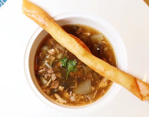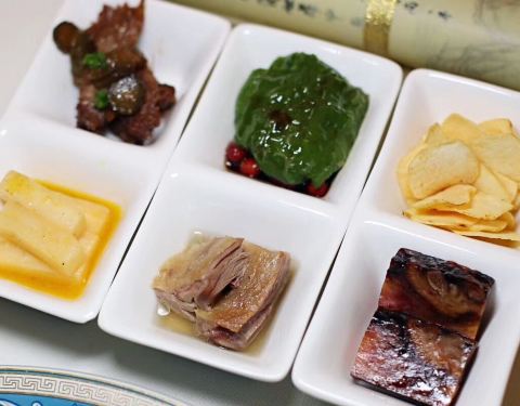 扬州迎宾馆国宴厅,淮盐菜始于春秋、兴于汉唐、盛于明清,淮扬菜根在扬州,底蕴浓厚,品质始终保持高水准,前菜六小碟为,靠小鱼、虎皮椒、卤茭白、酱时花、盐水鹅、炸茨菇,热菜:清汤酸辣甲鱼盅(配了似春卷)...