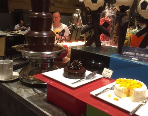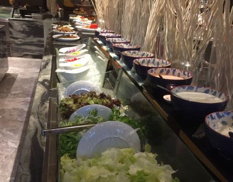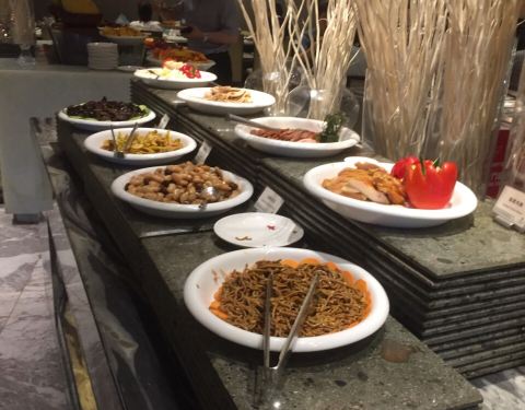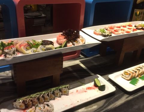 刚巧在搞活动,晚上自助餐原价是300多,但用微信付款是半价。说实话,认真贵的东西不多,只有少量的日本鱼生,海鲜也不多,很多食物都补给不足,水果盘空着的时间很长。