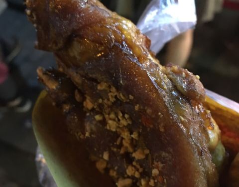 ...了吃烤猪蹄,从瓯北打车过去买的,刚开始买了两个,儿子觉得很好吃,又去买,结果排队了好久,特别赞