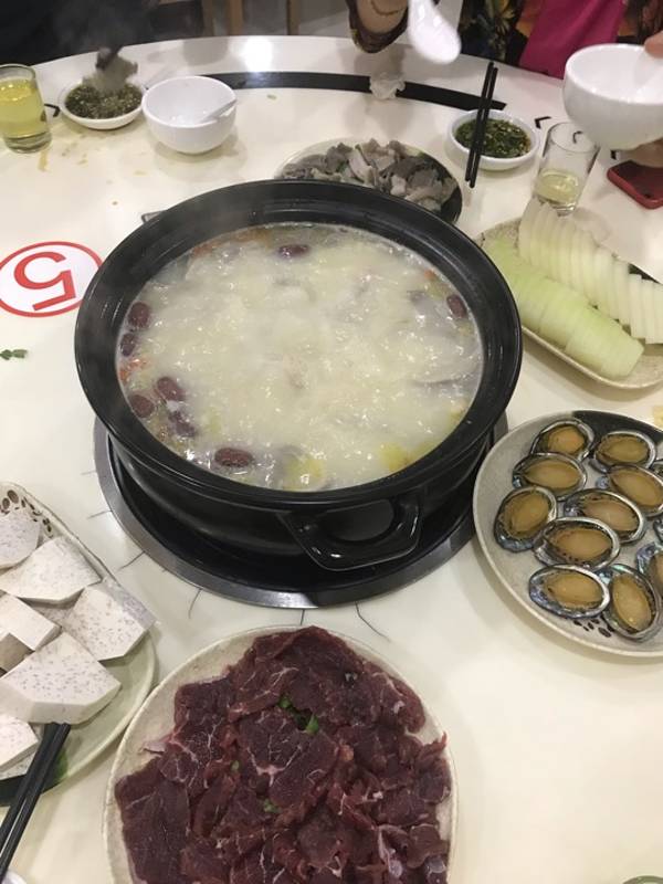猪肚鸡,不知道先从广东那边流行起来还是海南这边。非常适合海南广东饮食,清淡,打边炉,大家在冬季吃的热乎,非常的不错,鸡,海南的文昌鸡,这点吃的就是不同其它地方,鲜牛肉非常的不错,价格实惠,蘸料是海南特有,味道别有一番风味