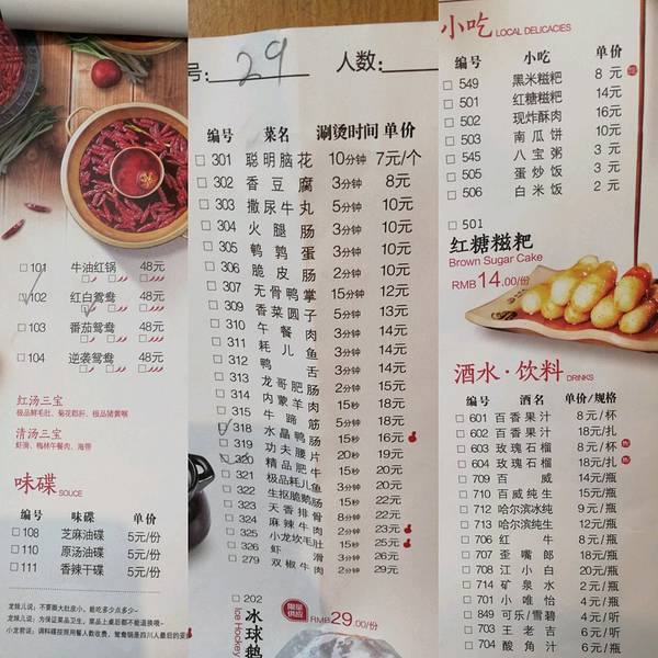 - 小龙坎😆成都的第一顿火锅。通过菜单感受一下成都的物价😶