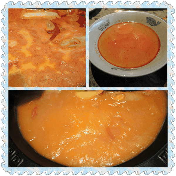 香油配蒜蓉,是最最最经典的火锅配料了。番茄汤超级鲜甜,涮煮青菜啊粉条啊都超好吃!怂 番茄鸳鸯真的好吃