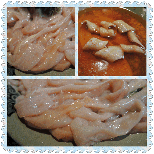 在锅里涮8秒(七上八下),就可以吃了。脆脆的,爽爽的,很有弹性!太好吃了!!!!!!